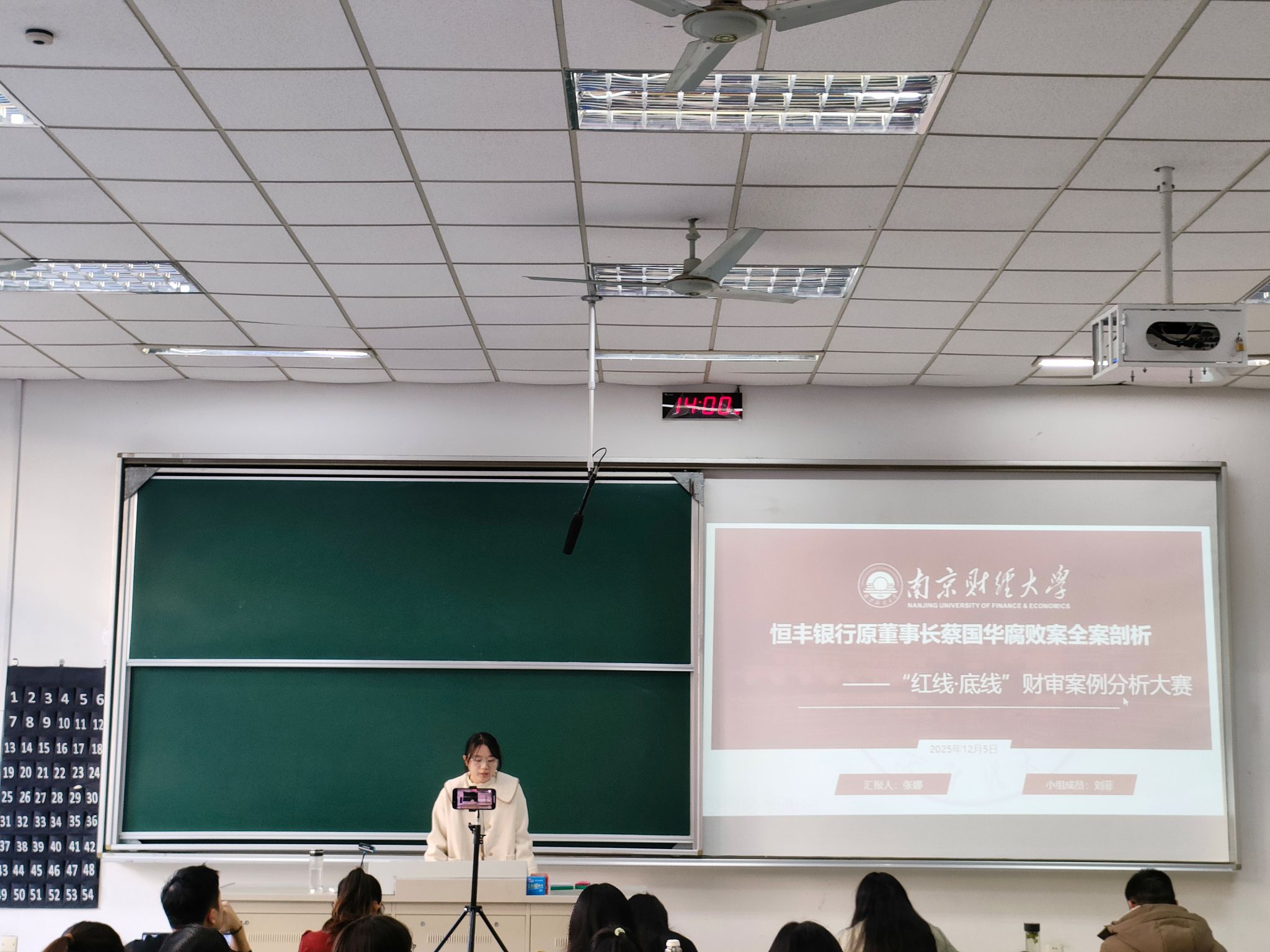 以赛促学,以练赋能守底线。12月5日,第二届“红线·底线”财审案例分析大赛在德济楼118教室顺利举办。各参赛队伍聚焦上市公司财务舞弊、关联交易违规、职务侵占、贪污腐败等真实财经案例,立足财审专业视角,深入剖析违法违规行为的操作路径、内控漏洞与深层诱因,并结合大数据审计等前沿技术,针对性提出风险防控方案与合规优化建议。大赛以专业实践为抓手,既锤炼了学生运用财审理论识别风险、研判问题的综合能力,更强化了“严守职业红线、坚守道德底线”的从业自觉,为新时代财经人才系好廉洁执业“第一粒扣子”。