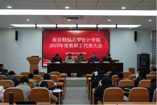 冬日暖阳映初心,砥砺奋进启新程。12月31日下午,会计学院2025年度教职工代表大会在仙林校区德济楼308会议室隆重召开。学院党政领导班子成员与44名教代会代表齐聚一堂,以高度的责任感和使命感共商学院发展大计,会议由党委书记卜金涛主持,现场氛围庄重热烈、务实高效。