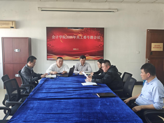 2025 年 3 月 28 日,会计学院党委在德济楼 349 会议室召开关工委工作专题研讨会,学院党委全体委员参会,围绕本年度关工委工作重点、实施路径及保障措施展开深入研讨,最终商定年度工作计划,为学院关工委工作高质量推进明确方向。
