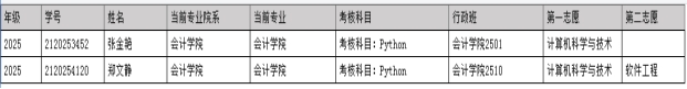根据学校教务处下发的《关于公布2025-2026学年第二学期本科生转专业工作安排的通知》要求,我院于2026年3月30日-4月3日组织了2025级本科生进行转专业志愿填报工作。我院共收到2名2025级本科生转专业志愿申请,现予以公示,具体名单见下: