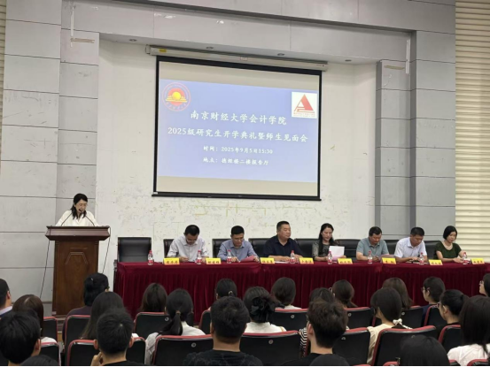 9月5日下午,我院2025级研究生开学典礼暨师生见面会在德经楼二楼报告厅顺利召开。党委常委、副校长姚文韵,会计学院党委书记卜金涛、院长李翔等学院领导班子成员出席典礼。学院研究生办公室秘书、研究生辅导员及2025级全体研究生新生参加活动。典礼由院党委副书记布丹丹主持。