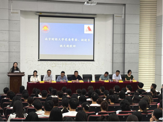 姚文韵副校长首先代表学校向2025级研究生致以热烈欢迎,并介绍了我校工商管理学科的建设进展。她指出,在2025软科中国财经类大学排名中,我校位列第10,工商管理学作为优势学科,入选软科“中国一流学科”。姚校长勉励新生尽快完成从知识接受者到学术探索者的转变,主动融入学术环境,提升自主研究与创新能力;希望同学们充分利用学校丰富的产学研平台,积极参与实践,通过系统化训练夯实专业基础,将所学所知转化为个人核心竞争力,拓宽成长路径,夯实未来发展的根基。